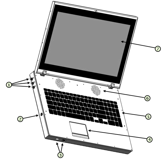 eLabin1 Overview Front-Left Side view Table 1. Front-Left Side view 1 some text 2 some text 3 some text 4 Touch-panel 5 some text 6 Loudspeaker 7 LCD screen with touchscreen-functionality Rear-Right Side view Table 2. Rear-Right Side view 1 some text 2 some text 3 some text 4 some text 5 some text 6 some text Main Screen